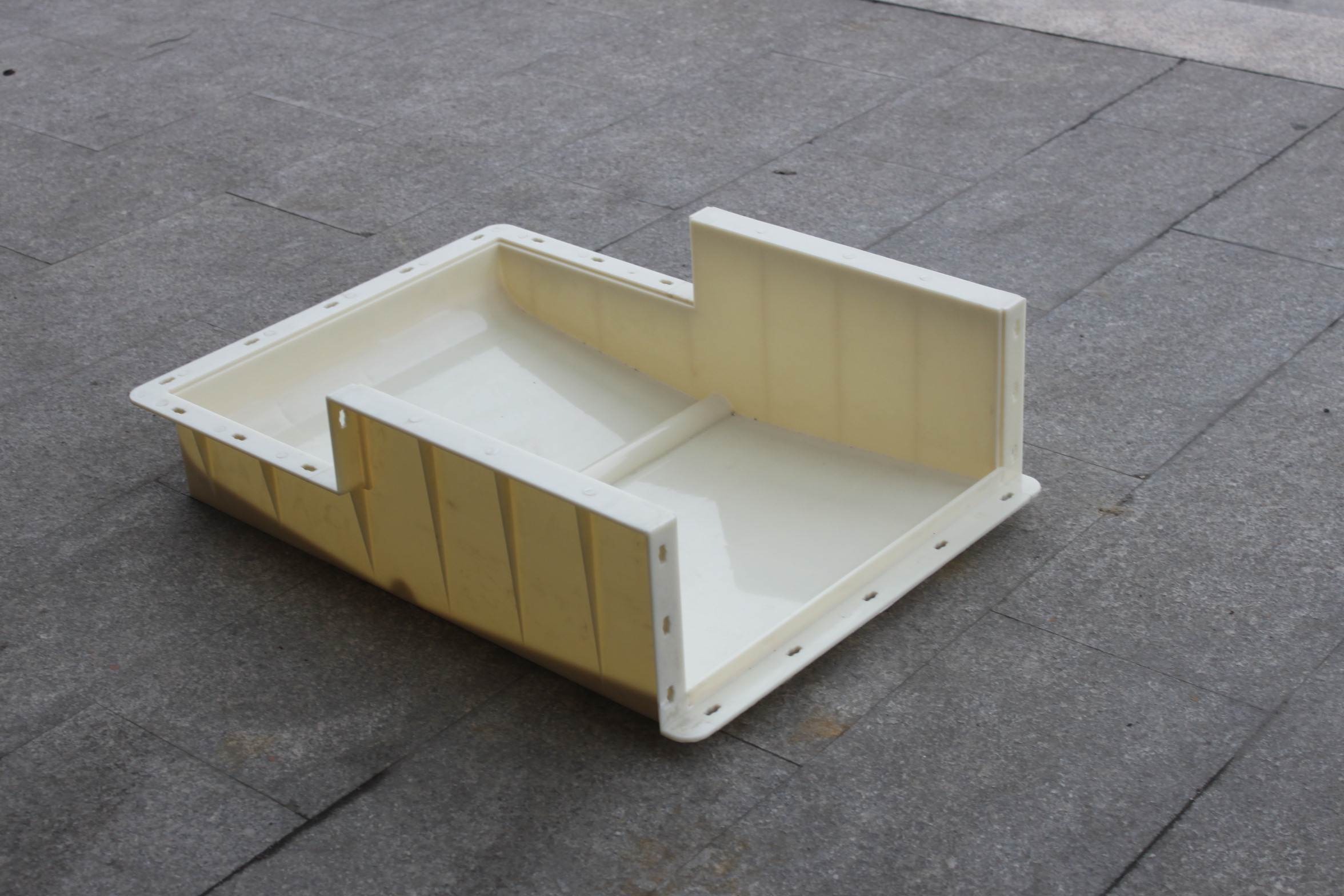 麗臣塑業(yè)所生產(chǎn)的73型高鐵遮板模具,針對客戶需求開發(fā)了2款不同后蓋的模具,平蓋型及法蘭蓋型。所有遮板組成部件均設(shè)置安裝槽設(shè)計(jì)可自由拆裝,包括遮板模具主體、上蓋和后蓋,非常人性化的融入到遮板預(yù)制工序過程中。