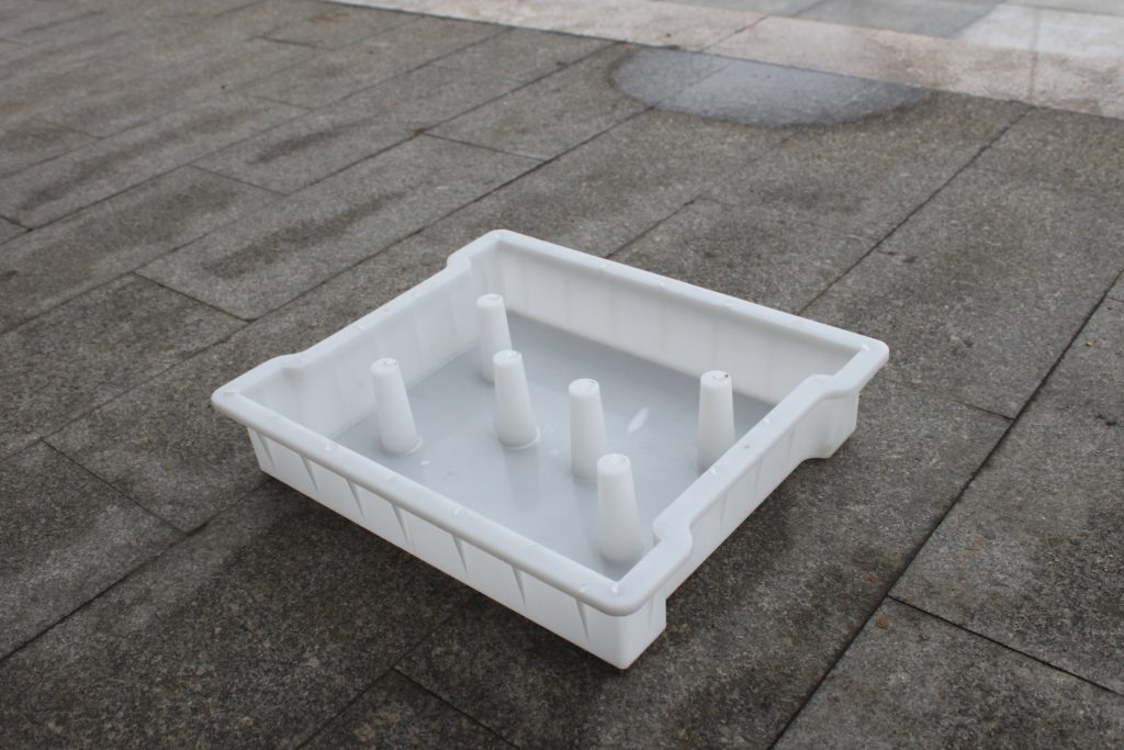 此款邊溝蓋板塑料模具采用塑料聚丙烯注塑加工而成,二端以缺口設(shè)計(jì),方便后期對于邊溝部分區(qū)域是否堵塞情況。而在蓋板塑料模具的內(nèi)部共設(shè)置了六個塑料堵頭,實(shí)際上就是水泥蓋板成品上的六個下水孔。