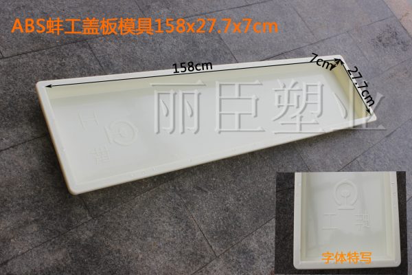 ABS塑料材質的高鐵蓋板塑料模具根據其材質特性,顏色上主要呈現富有光澤的米黃色,硬度較高,用此蓋板塑料模具所預制水泥蓋板尺寸更為精準,“蚌工”字樣及鐵路圖標更為清晰,最大的缺點就是韌性相比聚丙烯稍差一些,也就是人們常說的更脆一些,比較容易損壞。