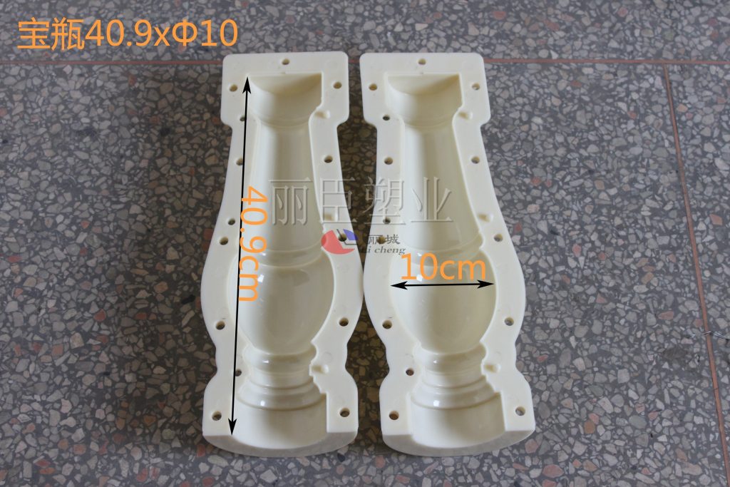 羅馬柱欄桿模具的使用常常用于歐式風格的房屋建筑,在羅馬柱模具的尺寸大小上沒有過大的規定,這款羅馬柱欄桿在高度上為40.9cm,塑料模具本身直徑處于10cm,常使用于建筑欄桿處。