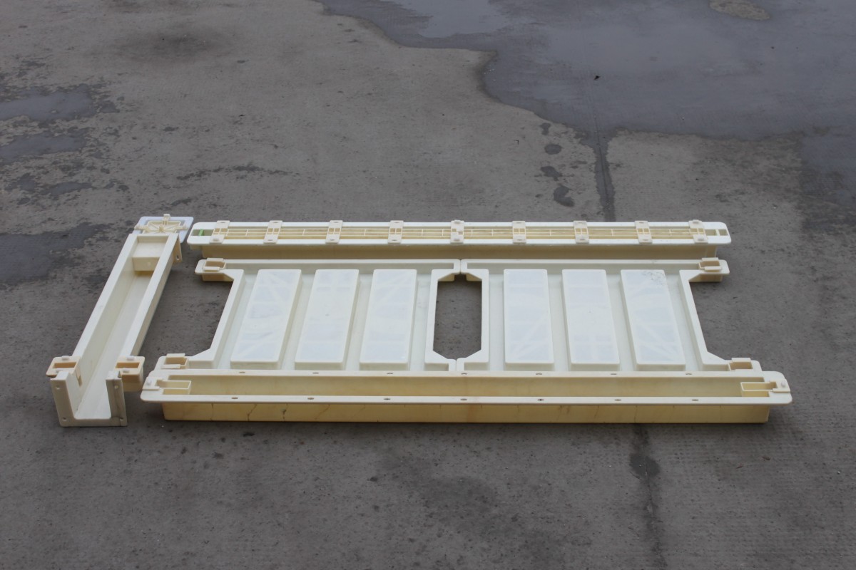 二.高鐵護欄上下梁欄桿模具,上梁尺寸為196*11*10cm,結構稍顯復雜,主要配件有上梁壓條,插片等。下梁結構則較為簡易,模具內側2邊分別設計了下梁盒子,尺寸為196*11*10cm.